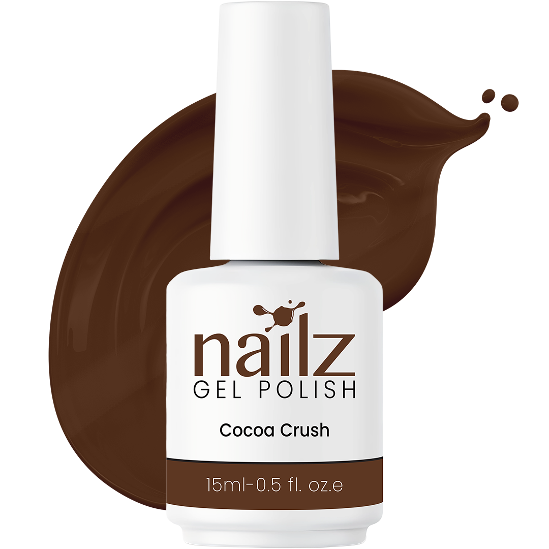 Discover the rich, vibrant beauty of Nailz Gel Colors in Cocoa Crush. This professional gel polish offers impeccable coverage and a stunning, high-gloss finish that truly lasts. Its smooth, easy application ensures a flawless, streak-free coat every time, perfect for adding a captivating pop of color or as a versatile foundation for nail art.