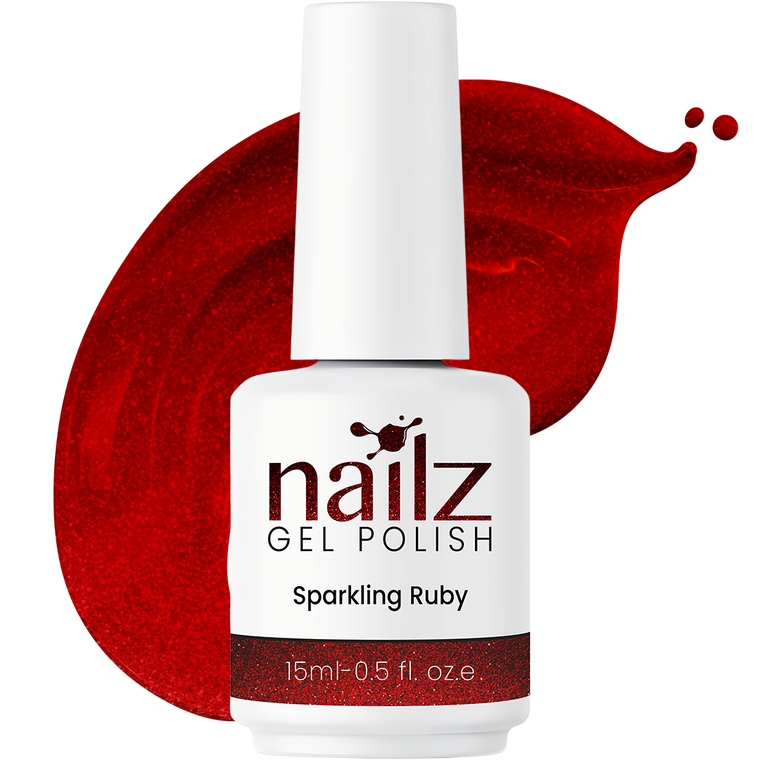Discover the rich, vibrant beauty of Nailz Gel Colors in Sparkling Ruby. This professional gel polish offers impeccable coverage and a stunning, high-gloss finish that truly lasts. Its smooth, easy application ensures a flawless, streak-free coat every time, perfect for adding a captivating pop of color or as a versatile foundation for nail art.